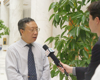 中国航空工业第二集团公司总法律顾问李申田在会议间歇接受采访