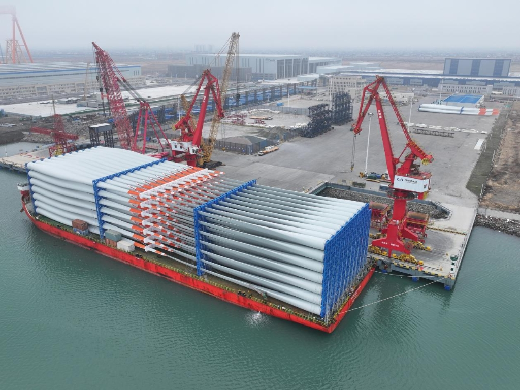 153支风电叶片在中国外运吕四智能重装码头完成装船作业。